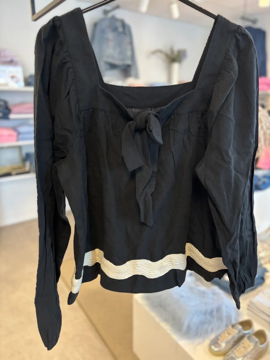 Den dekorativa kanten nedtill ger blusen det lilla extra och lyfter helheten utan att ta över. Materialet känns behagligt mot huden och gör plagget enkelt att bära både till vardag och mer uppklädda tillfällen.