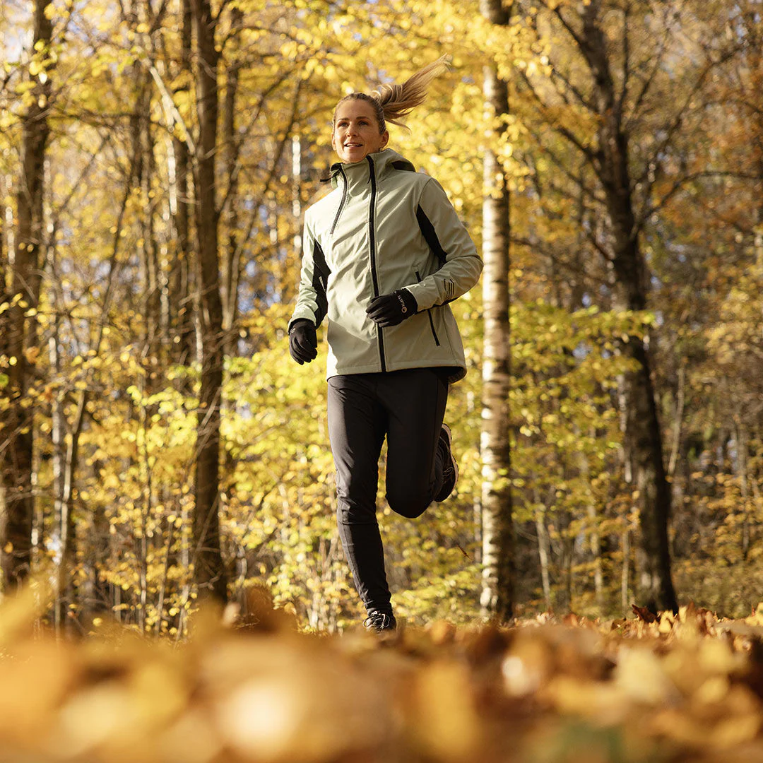 Olas-skidbyxor med mjukt borstad insida och rygg som andas. Dessa byxor är tillverkade av flexibelt softshellmaterial och är perfekta för vinterlöpning.
