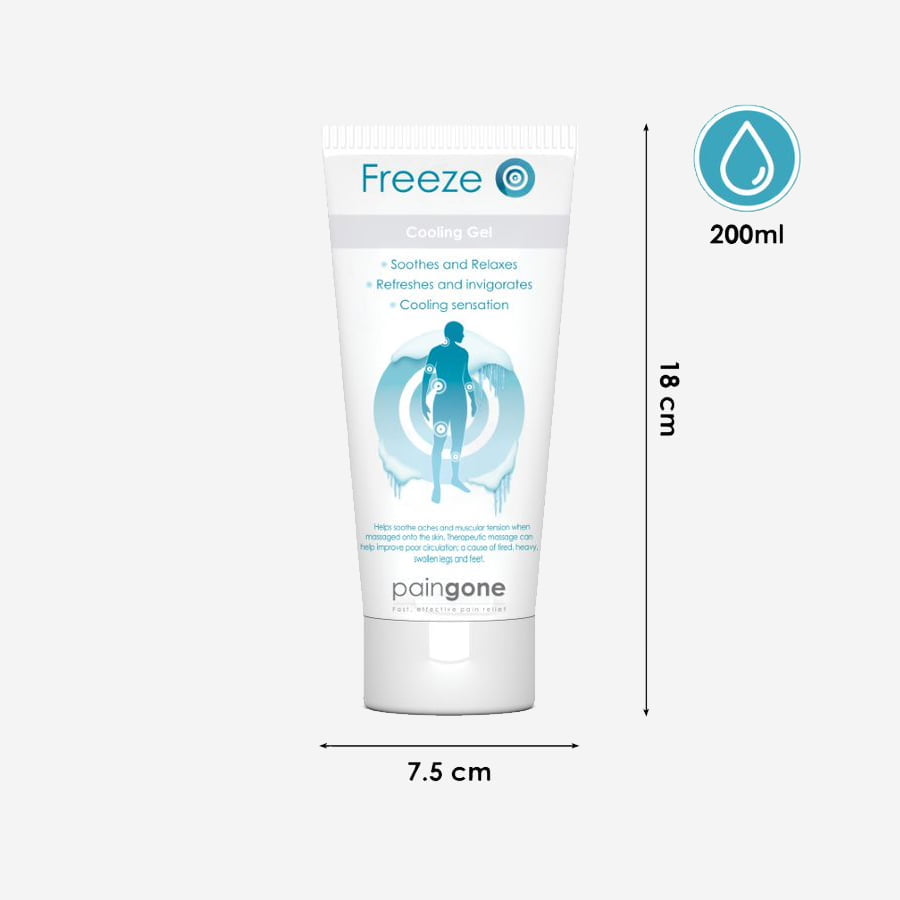 Paingone Freeze har en smärtlindrande effekt och kan användas för behandling av värk, ömhet och smärtor i leder och muskler. Gelen har en frisk doft av mint. Den innehåller ispropylalkohol som ger en kylande lindring av den kroppsdel du smörjer in. En fin sammansättning i gelen gör att den inte klibbar.