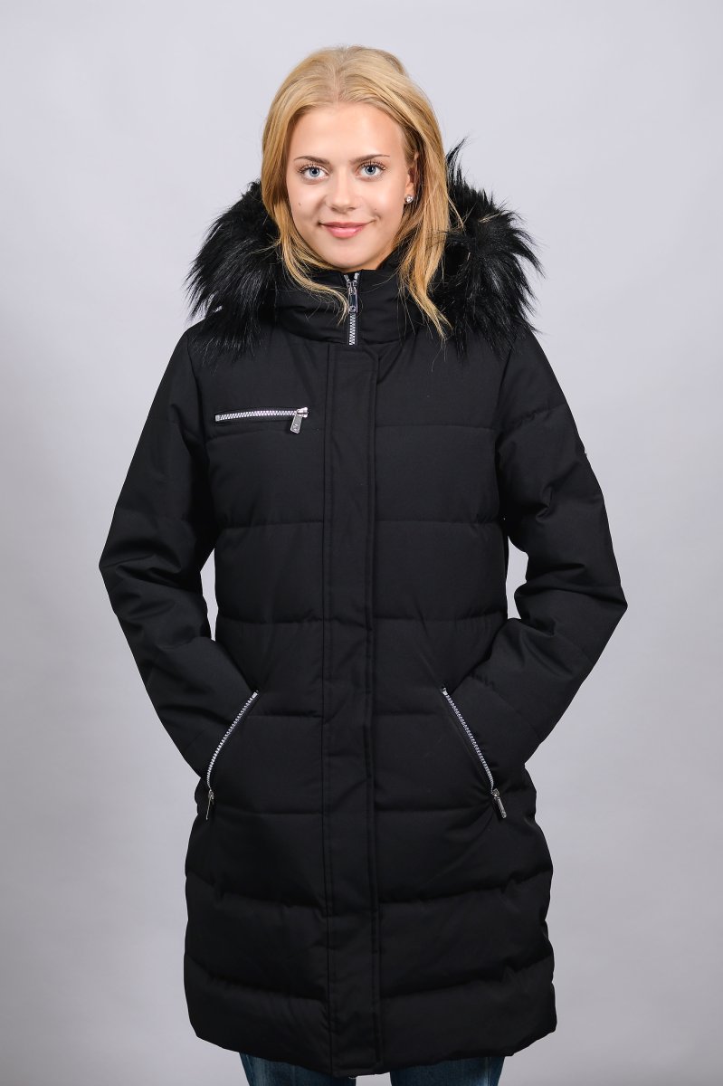 PAULA är en underbar lång varm parkas i ett mjukt vattenavvisande yttertyg med Cobtex 5000 membran. Huvan har en kant av elegant fuskpäls.