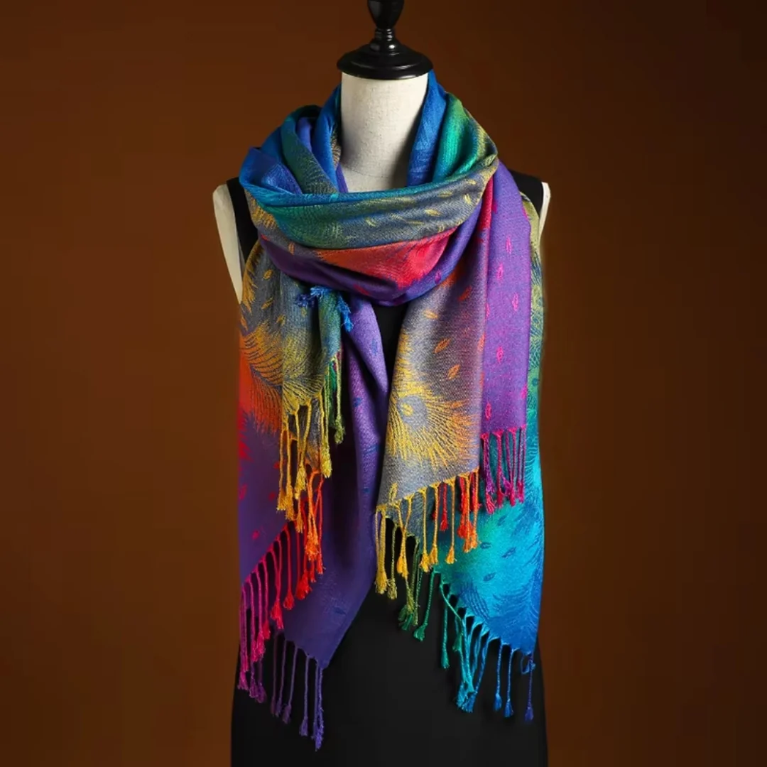 Känn den ultimata mjukheten och värmen med Pavo™ Lyxigt Mjuk Halsduk. Tillverkad med förstklassiga material ger den både stil och komfort under kalla dagar. Den eleganta designen med påfågelfjäder ger en unik touch av skönhet, vilket gör den här halsduken perfekt för alla tillfällen. Det är också ett utmärkt val för retro-stil hijab.