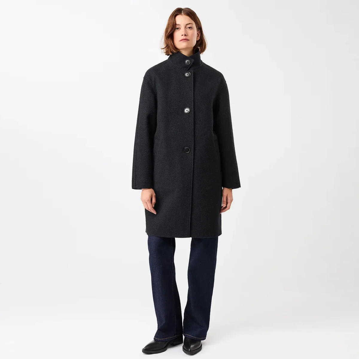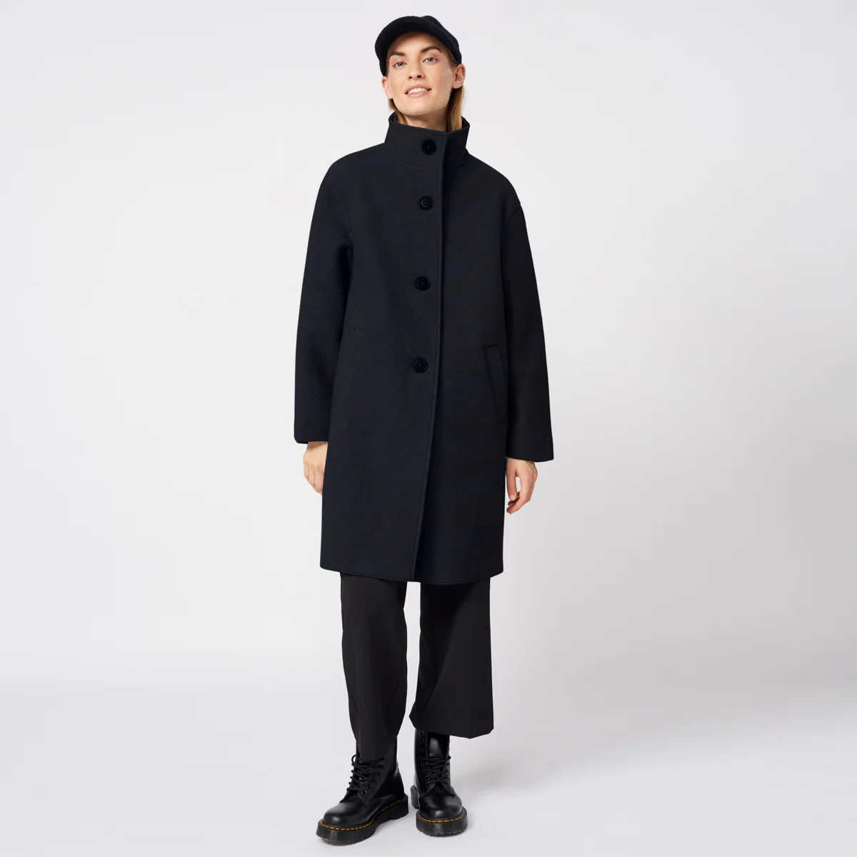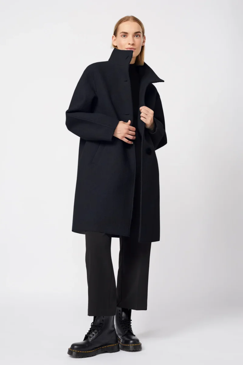 Modellen Pennfield drar sin inspiration från klassiska kappor från 60-talet med sin stand-up collar & stora knappar. Du kan bära din normala size eller välja en lite större då den är lika snygg oversize. Det ståtliga materialet faller så otroligt fint. Absolut noll sladdrighet här alltså!
