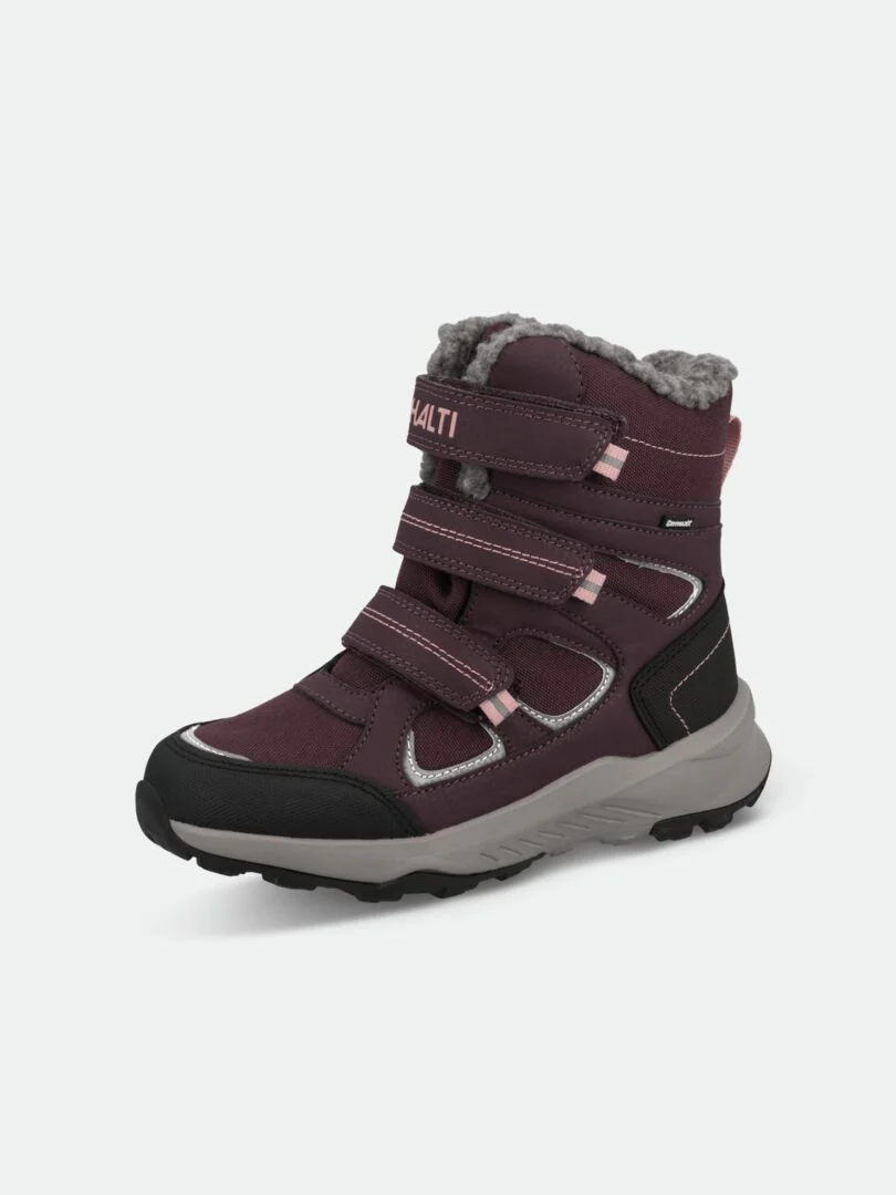 Reiss är en klassisk, varm vinterstövel för barn, designad för enkel påtagning med tre justerbara Velcro-remmar. Den höga, åtsittande passformen går innanför byxbenen och håller värmen inne, medan reflekterande detaljer förbättrar synlighet. Ett varmt textilfoder i pälsimitation tillsammans med det vattentäta DrymaxX®-membranet håller fötterna torra och varma i vinterförhållanden.