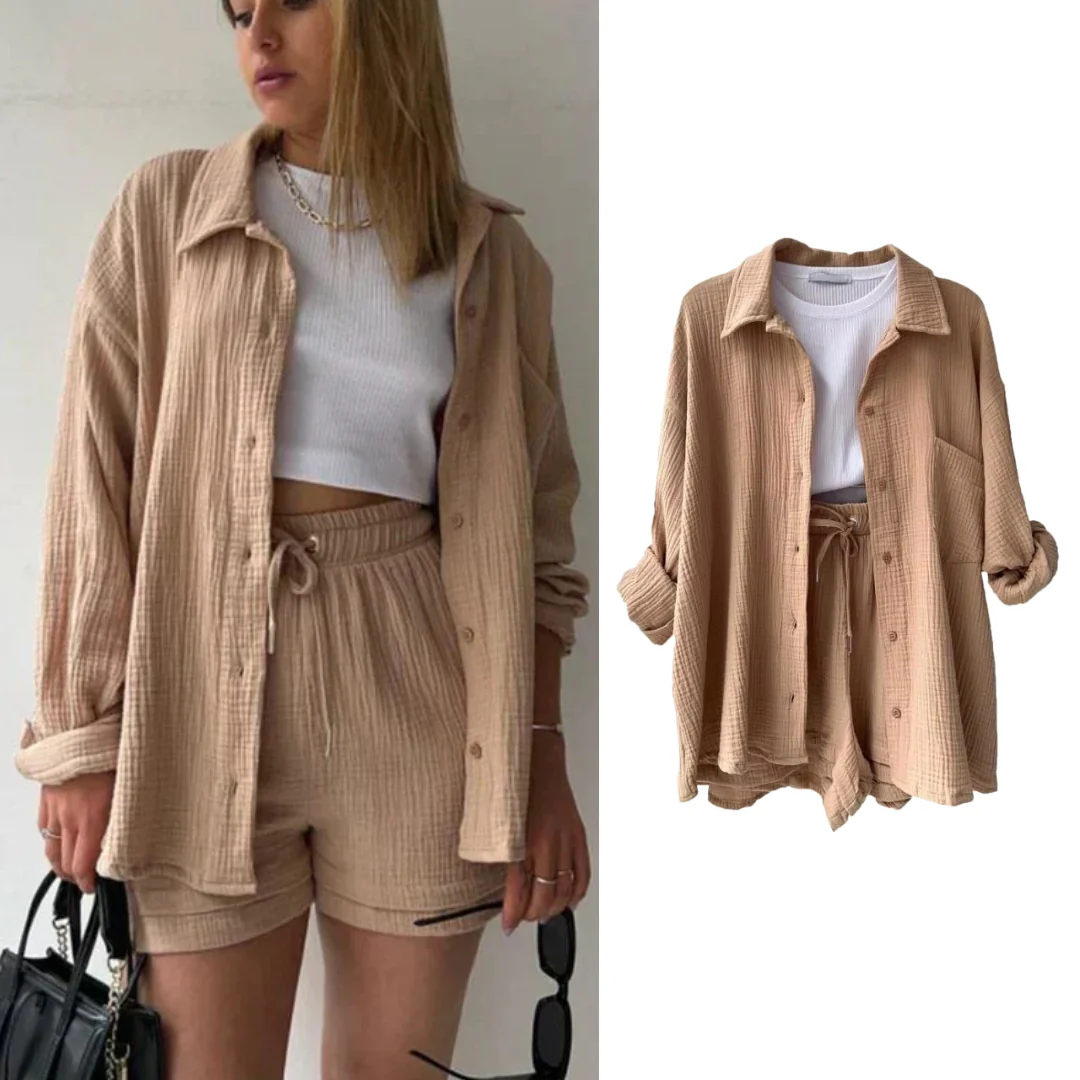 Sanny™-setet är tillverkat av mjuka, andningsbara och högkvalitativa tyger som håller dig sval och bekväm hela dagen. Med en avslappnad men ändå smickrande passform tar detta set dig enkelt från stranddagar till kvällsutflykter – alltid med stil under den varma sommarsolen.