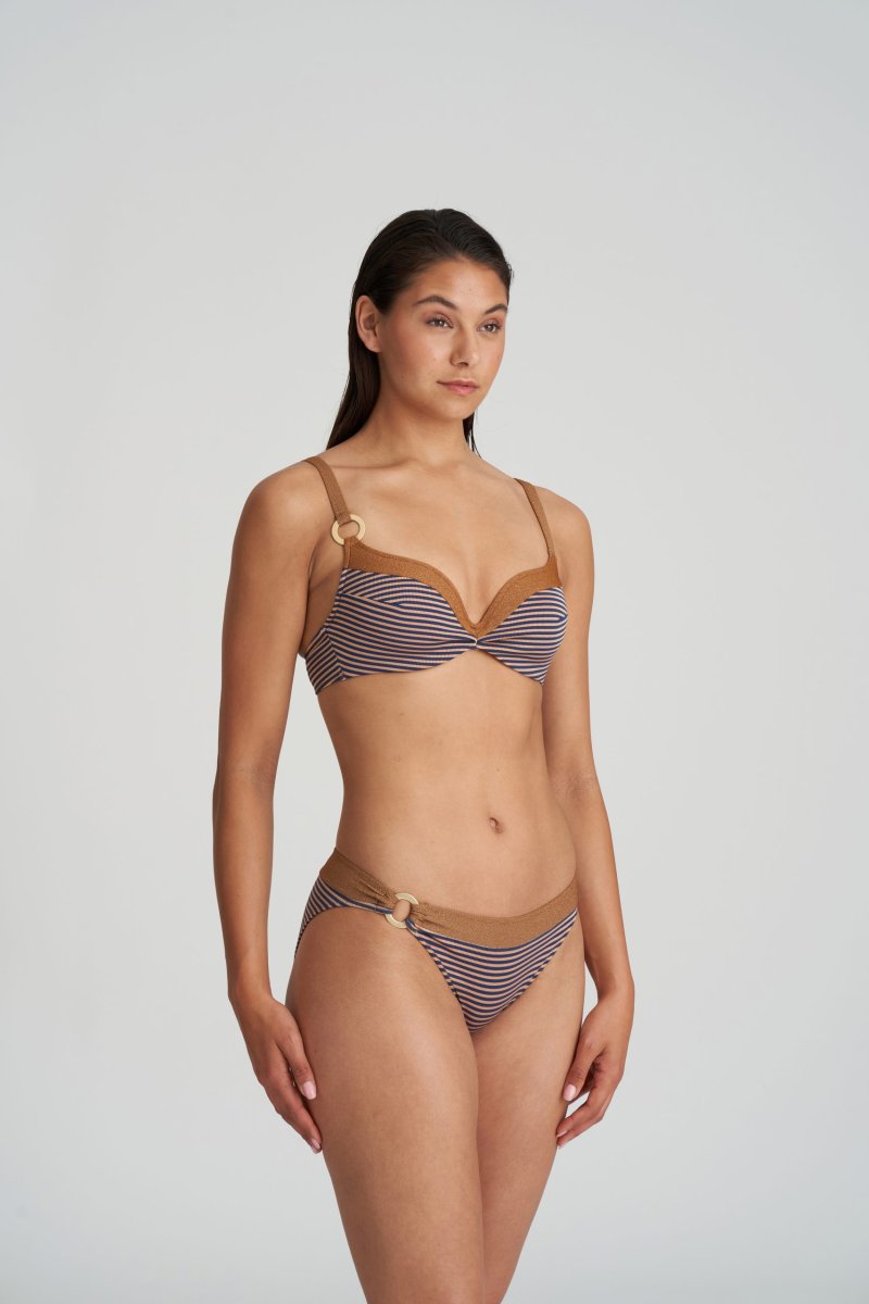 Hjärtformade bikini med vadderade kupor med lurex och ikonisk asymmetrisk ring på banden. Matcha med Saturna trosa.