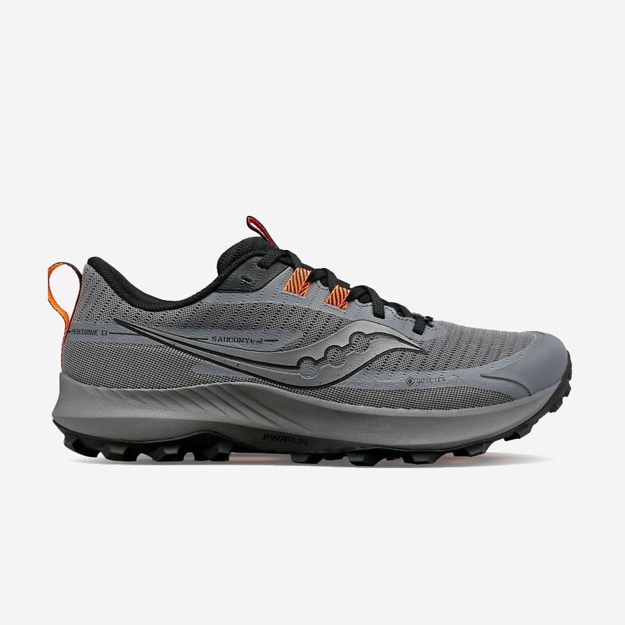 Vattentät löparsko för trailrunning. Saucony Peregrine 13 GTX har en något grövre mönstrad sula som ger greppet och skyddet du behöver. Med härlig komfort i skon och bekväm stötdämpning för att skydda fötterna har du förutsättningarna för att ta dig an terränglöpningen.