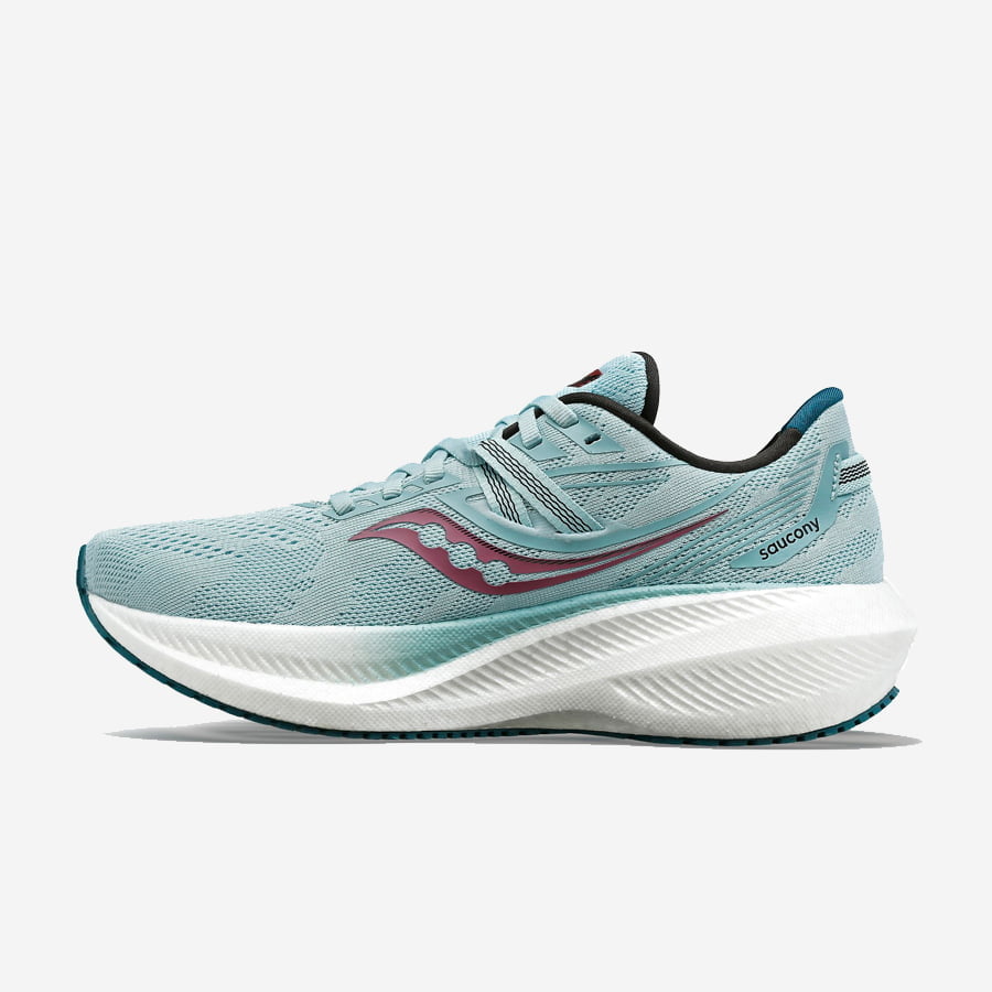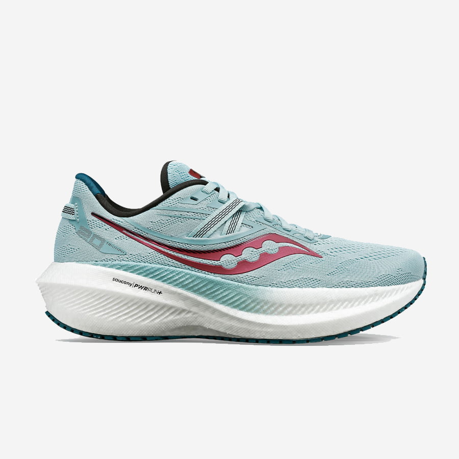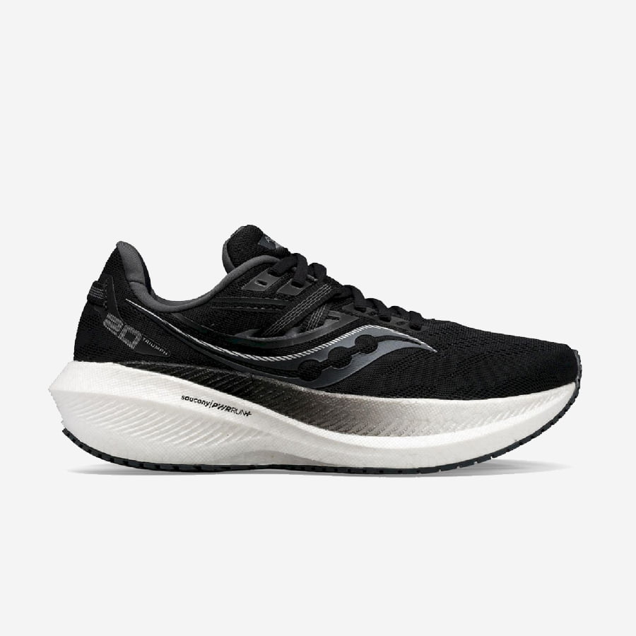 Saucony Triumph 20 är en toppmodell bland neutrala löparskor. I Triumph får du riktigt mycket stötdämpning för att ge gott om skydd till de långa löppassen. Har du ömhet i fötterna eller bara vill ha det mjukt under trampdynorna när du springer är Saucony Triumph 20 ett perfekt val. Saucony har uppdaterat den här versionen med en högre mellansula och använder sig nu av materialet PWRRUN+. Det ger en sko med ännu mer stötdämpning men samtidigt ca 30 gram lättare än föregående version. I vår mening en riktigt lyckad förbättring.