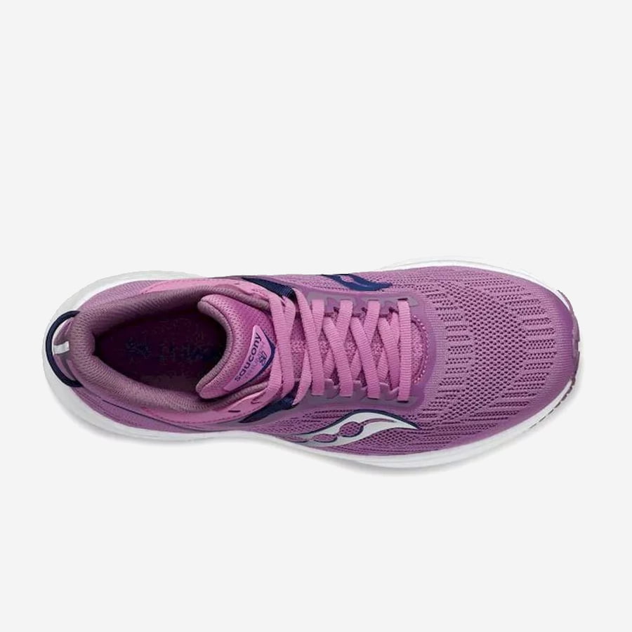 Om du söker mycket stötdämpning som ger dig god komfort, effektiv avlastning och skön känsla under dina löppass – leta inte längre. Saucony Triumph 21 fortsätter i samma bana som sina föregångare med att ge dig alla dessa egenskaper. Ovandelen är stickad och omsluter fötterna fint samtidigt som den ger en behaglig stabilitet.