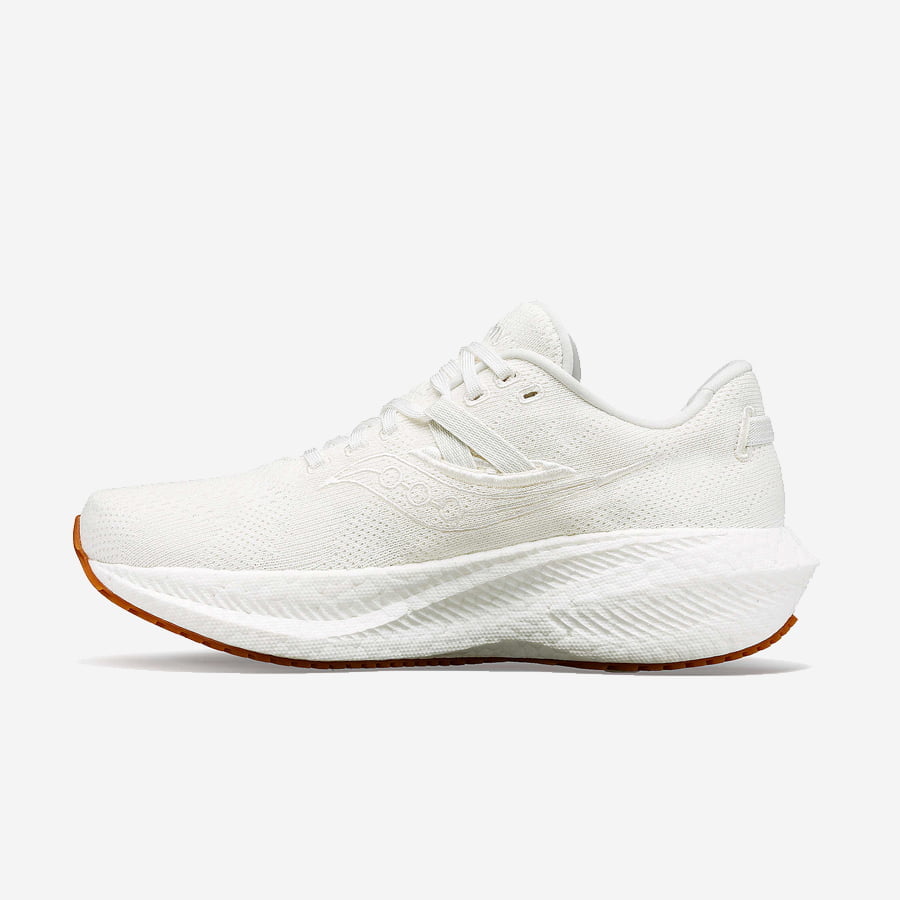Saucony Triumph RFG är löparskon du väljer om du vill ha mycket stötdämpning som ger dig god komfort, effektiv avlastning och skön känsla under dina löppass. RFG står för Run For Good, i den här modellen har ovandelen producerats med miljön i fokus genom att Saucony satsat på återvunnet garn och växtbaserade färgämnen.