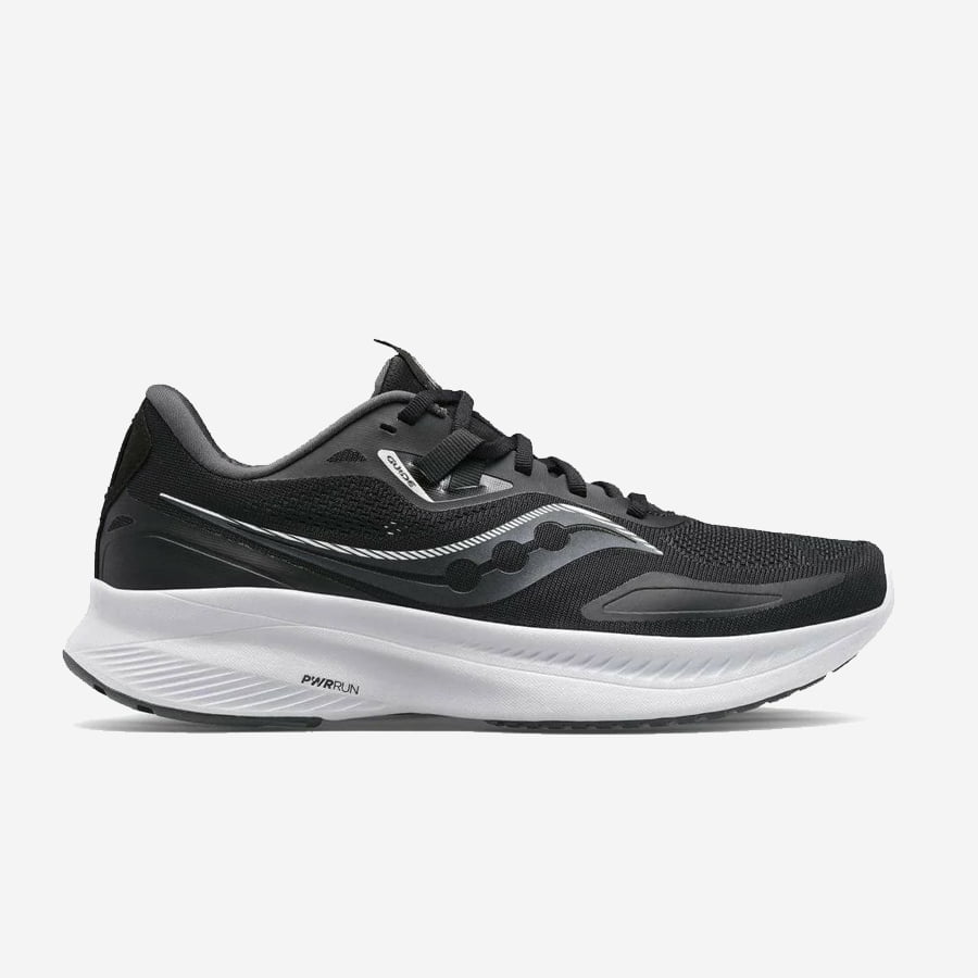 Saucony Guide 15 har fått en komplett makeover mot sin föregångare. Vikten är lägre, stötdämpningen har förbättrats med 18% och mellansulan har blivit högre. Av vad som en gång var Saucony Guide syns endast namnet kvar. Men de flesta trogna kunder kommer nog finna uppdateringarna väldigt lyckade. Det syns att Saucony tagit inspiration från sin Endorphin-serie när de uppdaterat Guide. Löpkänslan är fenomenal och mängden stötdämpning de pressat in trots den låga vikten är suverän. Precis som tidigare riktar sig Saucony Guide till löparen som behöver ett visst pronationsstöd. Det här är skon du väljer när du vill ha en mängdträningssko som utan problem klarar långa pass lika väl som fartlekar och intervaller.