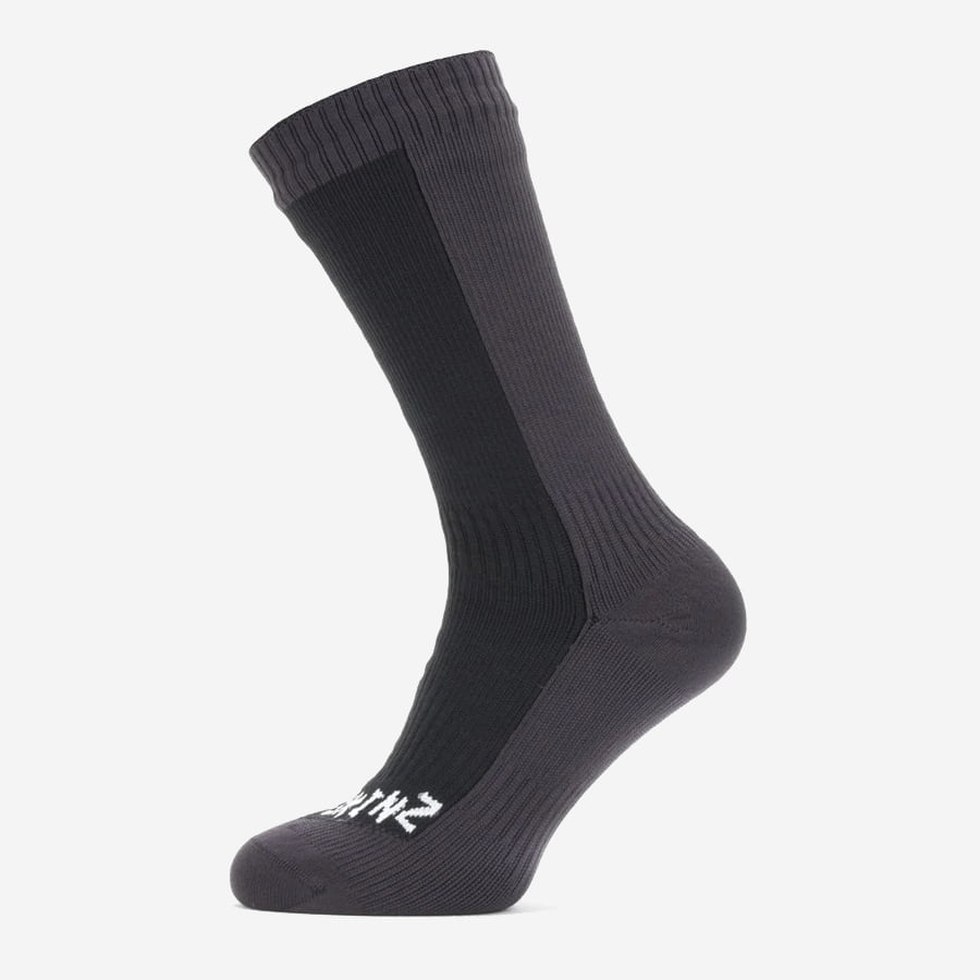 Sealskinz Waterproof Cold Weather Mid Length Sock är en helt vattentät strumpa som är idealisk vid kallare tillfällen. Strumpan är 100% vattentät och vare sig du ska ut en vinterdag, röra dig i blöt terräng eller ta dig fram cyklandes så är Sealskinz vattentäta strumpor ett lysande val. De skyddar dig mot väta, håller fötterna torra och skapar ett behagligt klimat då de också transporterar bort fukten från din hud.
