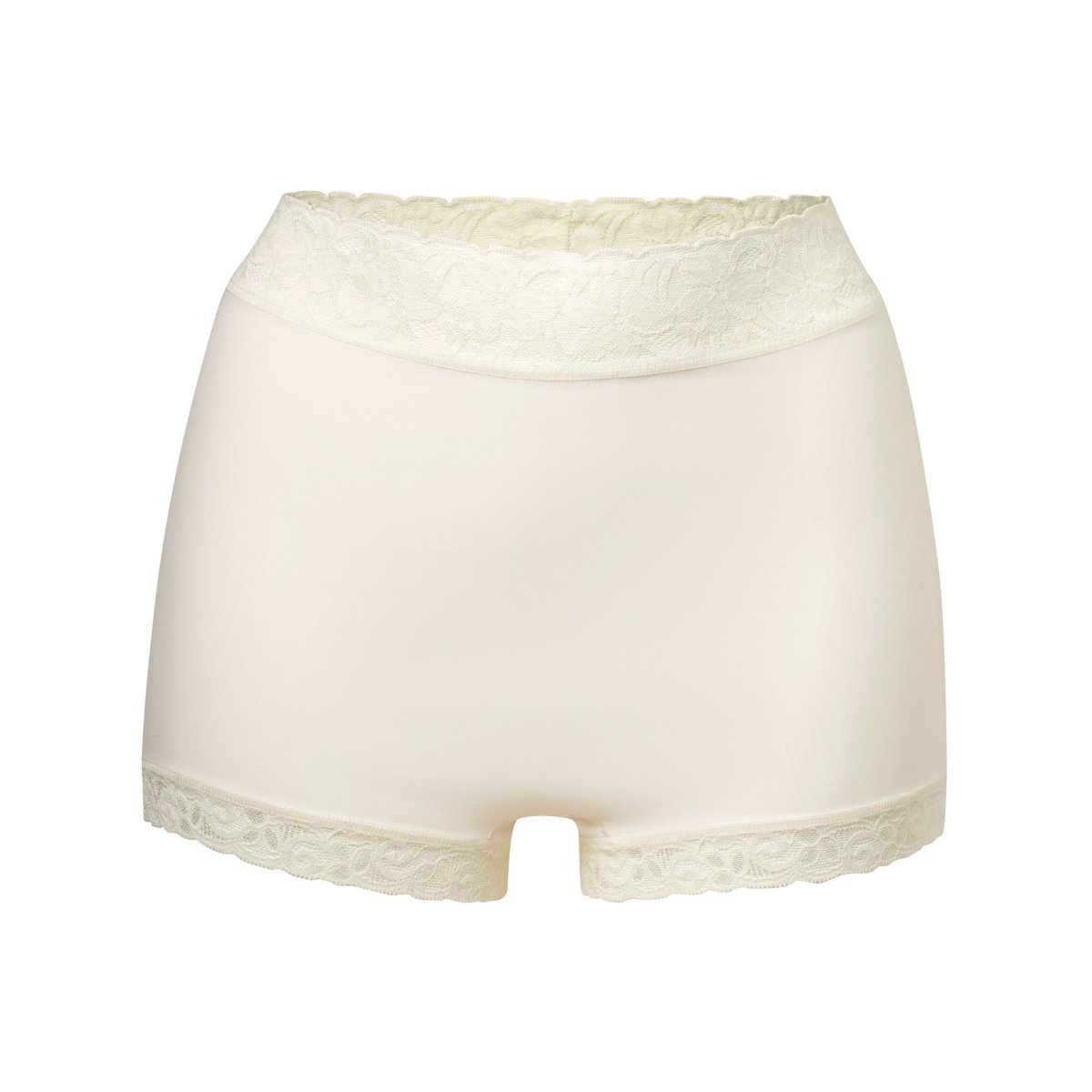 Hög boxertrosa från Avet med mjuka spetskanter. Denna trosa går högt i midjan och ben som en boxertrosa. Trosan har lätt shape och är i glansig polyamid som känns mjuk mot huden och gör att kläder inte fastnar. Frotté i grenen.