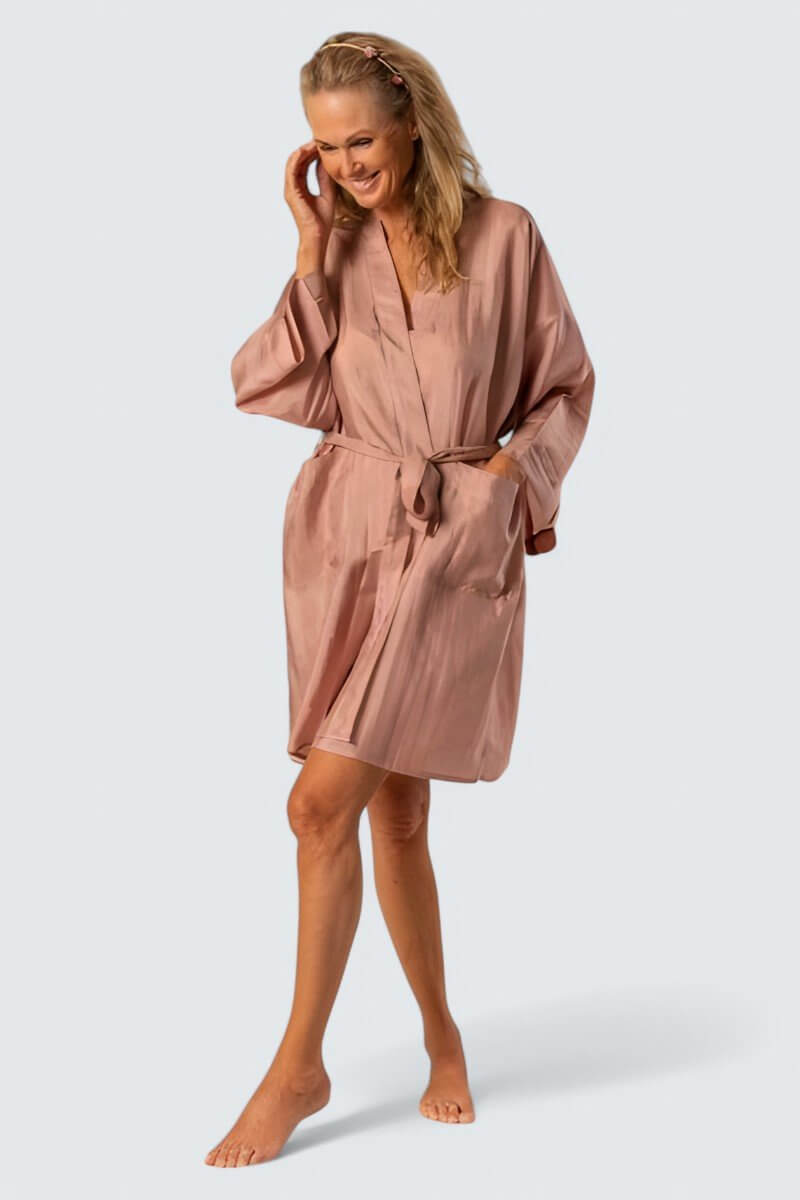 Lätt sidenkimono av kortare modell, 100% siden. Unna dig lyxen av en sidenmorgonrock i siden. Utmärkt på resan men lika ljuvlig hemma. Förpackad i en praktisk liten sidenpåse. Modellen är unisex och passar både kvinnor och män.
