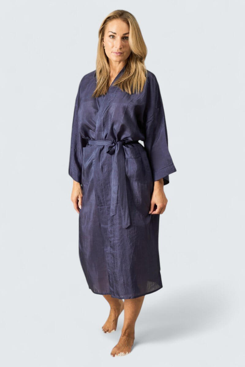 Morgonrock i 100% siden. Unna dig lyxen av en morgonrock i siden. Utmärkt på resan men lika ljuvlig hemma. Förpackad i en praktisk liten sidenpåse. Modellen är unisex och passar både kvinnor och män.