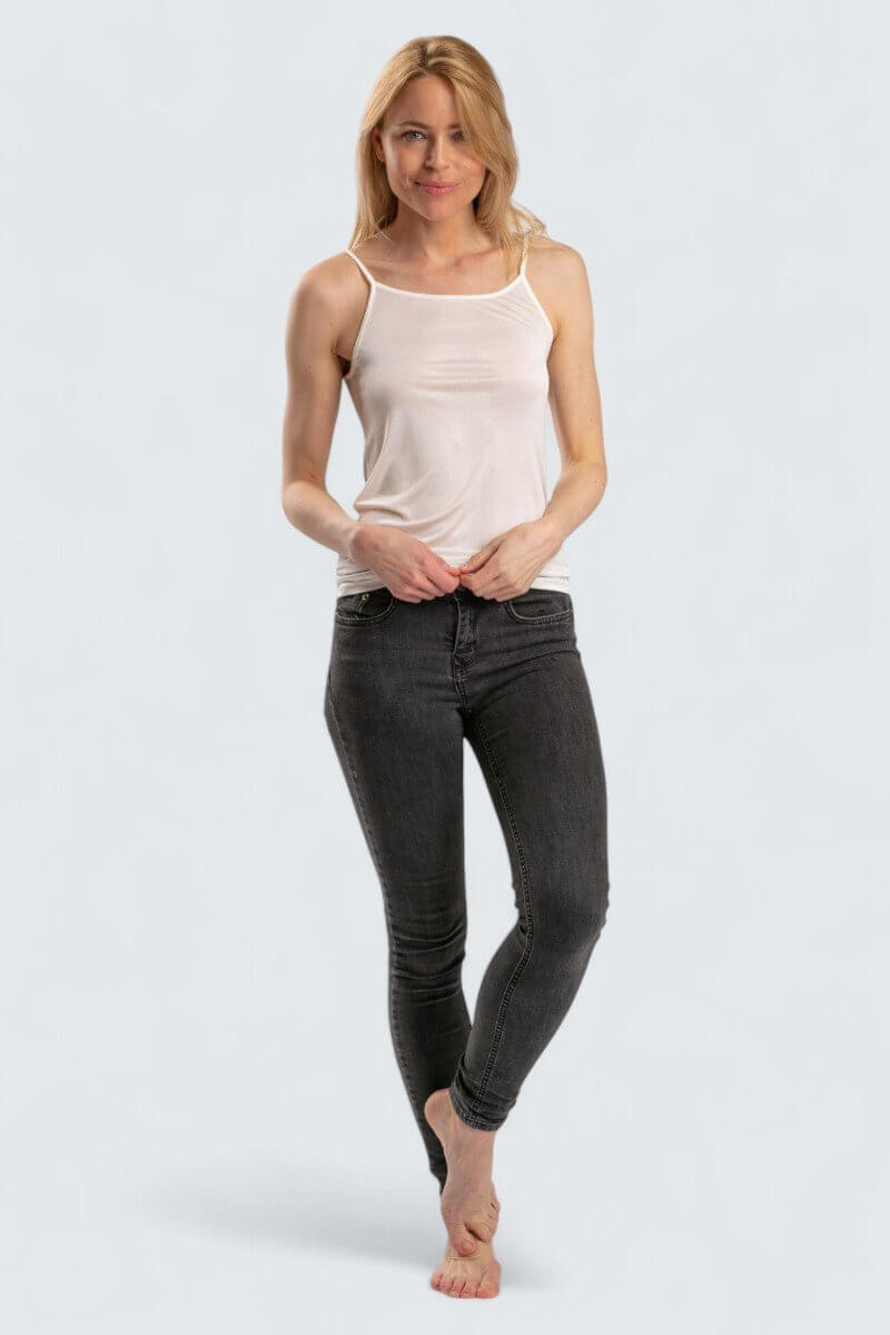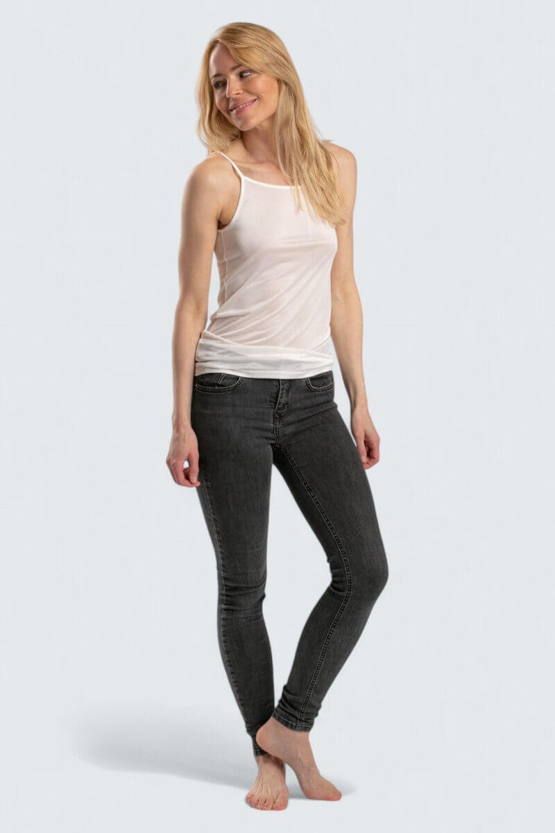 Tunt och fint linne i 100% siden. Axelbanden är justerbara efter längd. Mycket fin kvalitet.