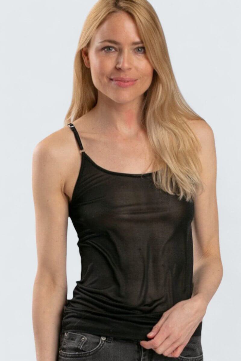 Tunt och fint linne i 100% siden. Axelbanden är justerbara efter längd. Mycket fin kvalitet.