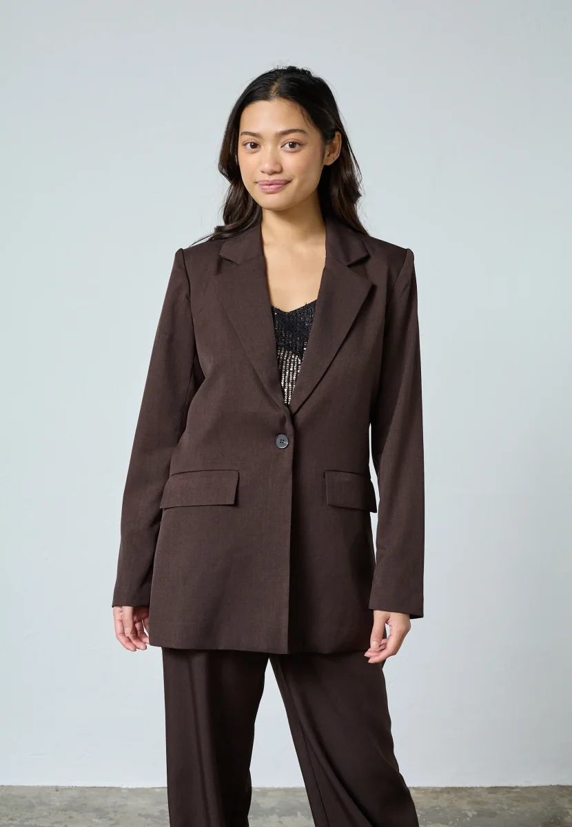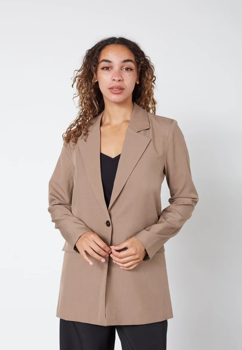 Vikska blazer från Sisters Point är en snygg och enkel kavaj med rak passform. Den har klassisk krage, knapp framtill och en stilren design som gör den lätt att bära till många olika outfits.