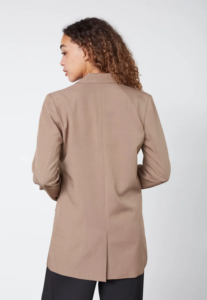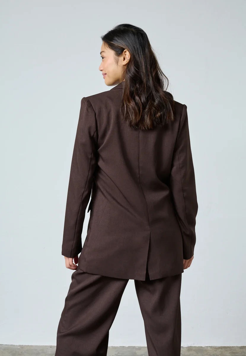 Den passar lika bra över en topp eller blus som tillsammans med matchande byxor för en mer uppklädd look. Färgen gör den enkel att matcha och funkar året runt.