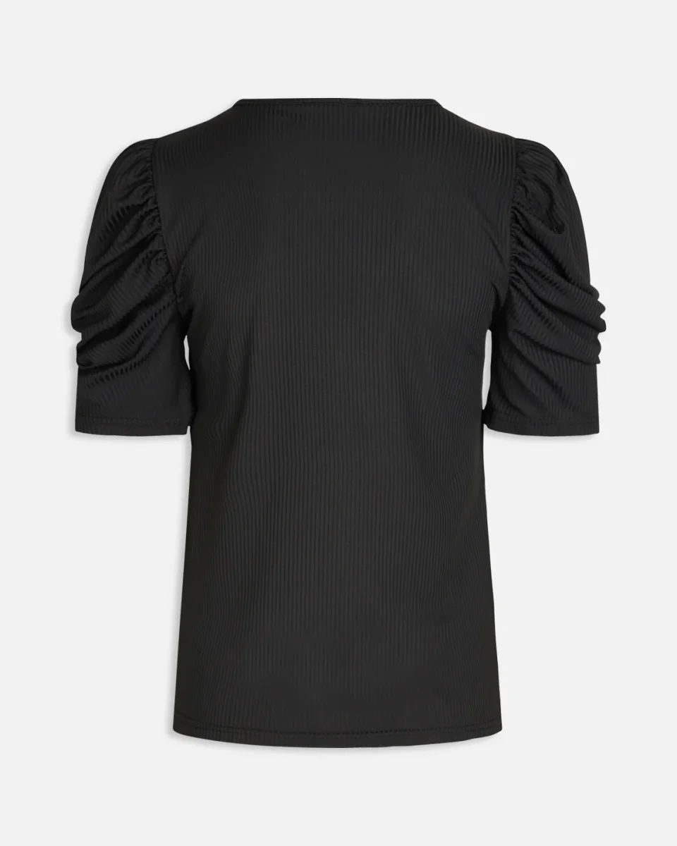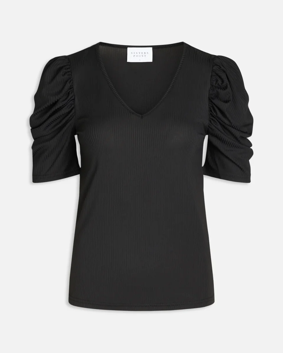 Vya topp från Sisters Point är en fin och skön topp i ett mjukt ribbat material. Toppen har v-ringning och korta ärmar med puff som ger ett lite mer uppklätt men ändå avslappnat uttryck.