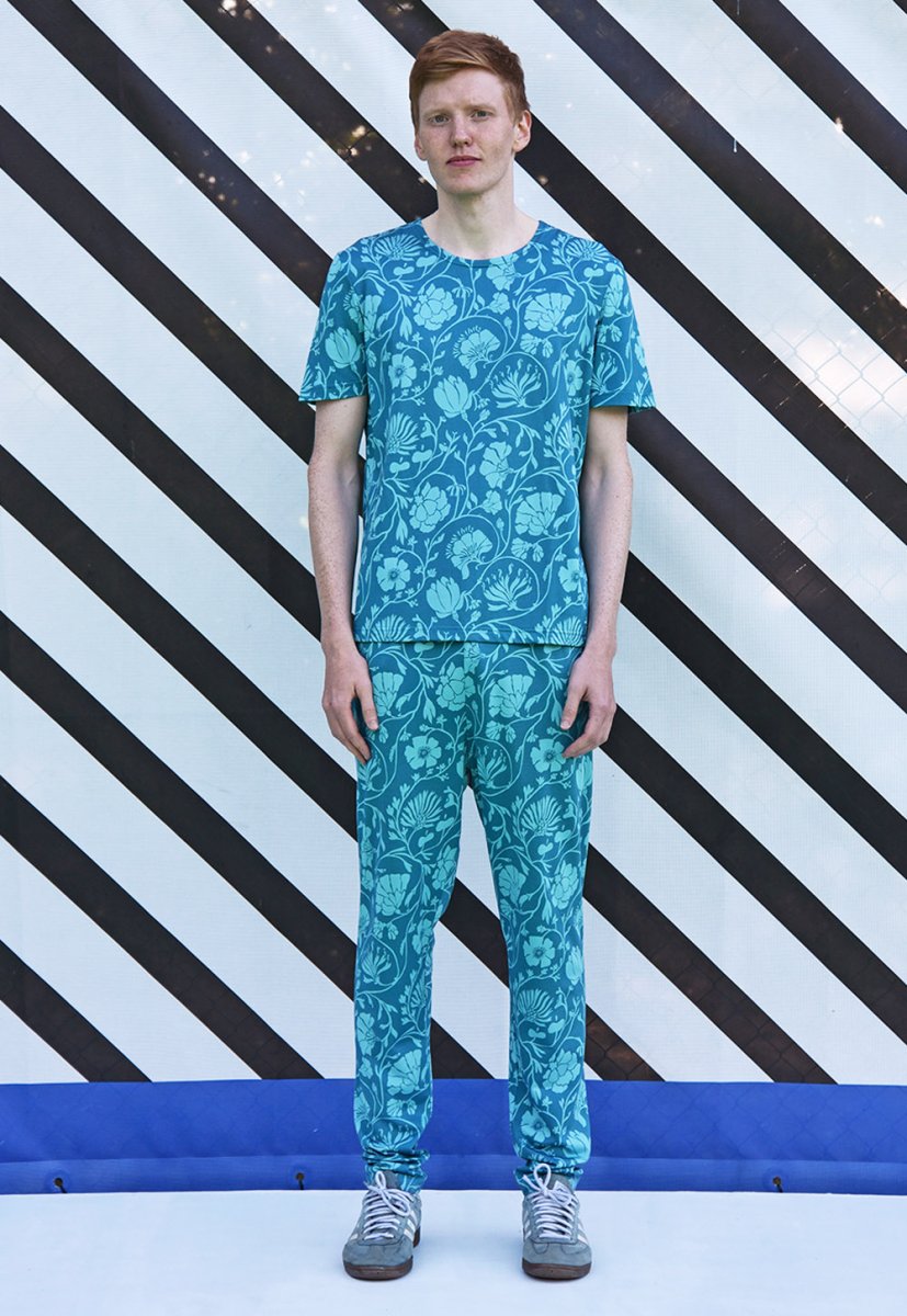 Smal byxa med resår i midjan. Tygkvalitet silkestrikå 63 % viskos och 37 % bomull. Maskintvätt 40 grader.