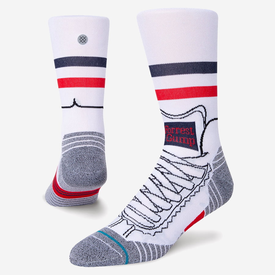 Fin hyllning till den klassiska och underbara filmen Forrest Gump. Strumporna är designade för att efterlikna de skor Forrest hade på sig när han sprang tvärsöver den amerikanska kontinenten. Run Forrest Run.