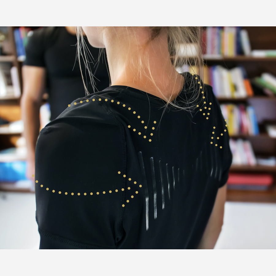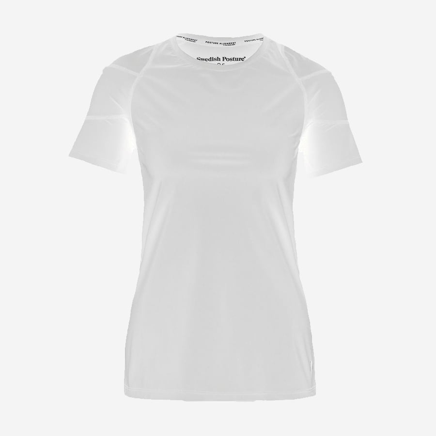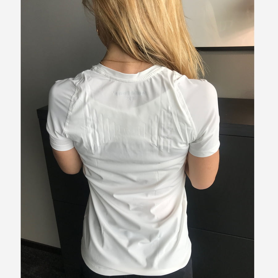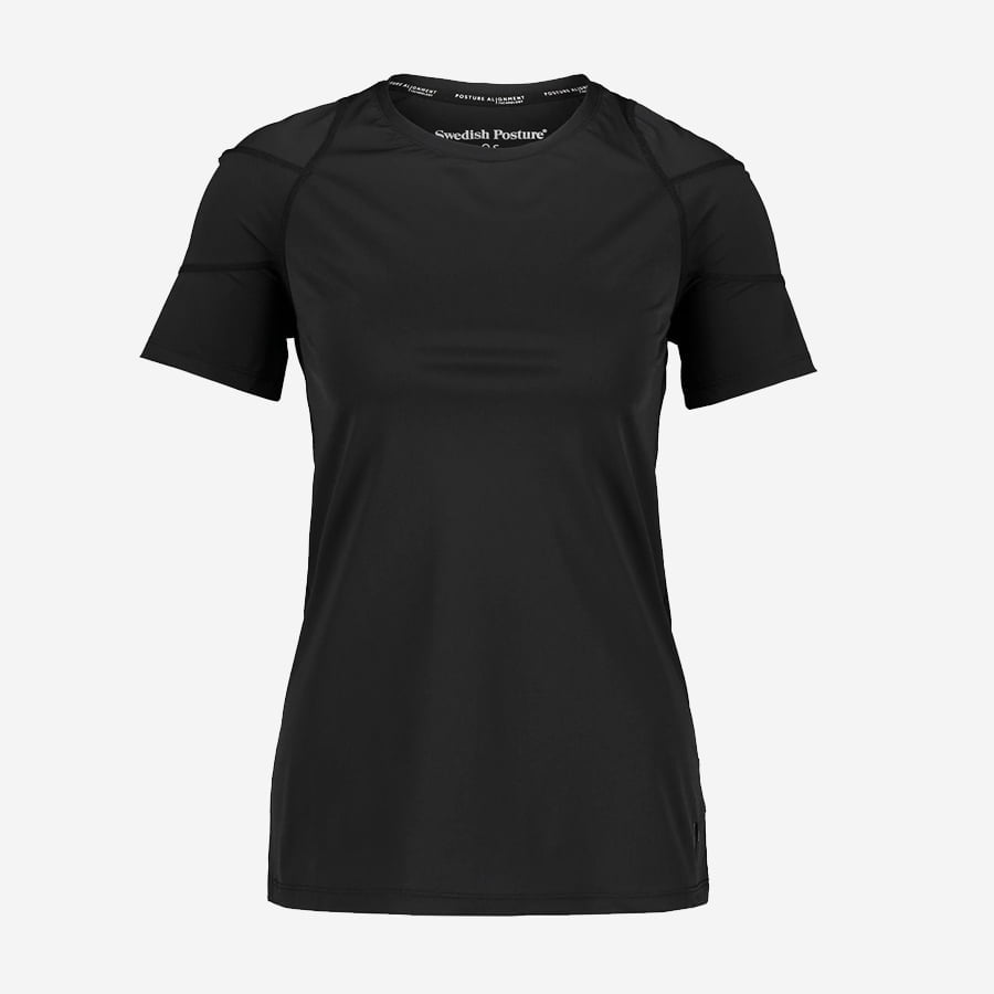 Den här t-shirten har en påminnande funktion för att du ska positionera dina axlar korrekt och därigenom få en bättre hållning i din rygg. Genom det elastiska partiet bak på tröjan får du en påminnelse så snart du börjar krumma ryggen och rotera fram axlarna. Detta gör att du snabbt sträcker på dig igen och korrigerar din position. Swedish Posture Reminder T-shirt Hållningströja har alltså ingen stödjande funktion som drar din kropp till ett visst läge utan låter istället din kropp göra jobbet genom att ständigt påminna dig när du tappar en bra hållning.