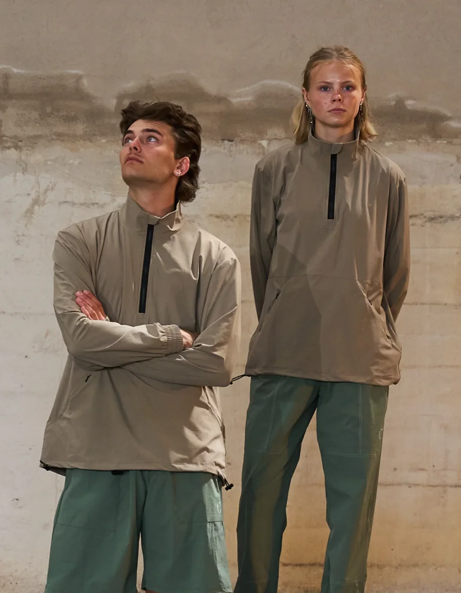 Tech-anorak med kontrasterande vita sömmar. Perfekt matchning med Tech 02-byxor som även finns i brunt med vita sömmar. Använd anoraken både inom- och utomhus – den passar lika bra för träning som för vardagsbruk.