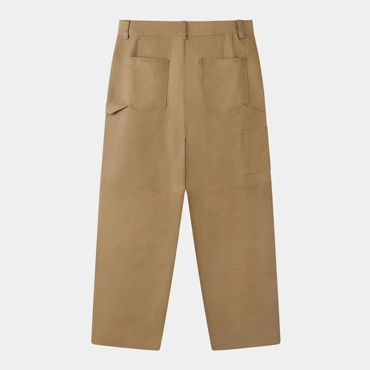 Theo byxor i Olivgrönt/sand. Tillverkade av 75 % ekologisk bomull, 23 % Tencel och 3 % spandex. Dessa vida byxor erbjuder andningsbar komfort med en touch av stretch för ökad rörelsefrihet. Etiskt tillverkade i en SEDEX-granskad fabrik, har de en corozo-knapp och en metalldragkedja för hållbarhet. Den överdimensionerade, extra lösa byxan är bekväm men ändå snygg, perfekt för vardagsbruk, och kombinerar genomtänkt design med hållbarhet för ett verkligt medvetet garderobens must.