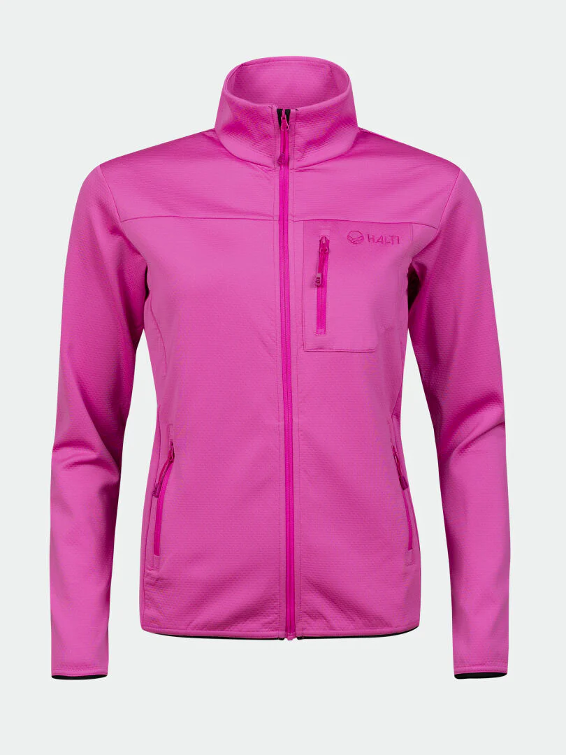 Toivo dam-mellanlagerjacka är ett lätt och tekniskt val för träningspass, uppvärmning och fritid. Det tekniska Active Dry-materialet erbjuder utmärkt andningsförmåga och transporterar effektivt bort svett för att hålla dig bekväm. Baksidan har ett material som känns mjukt mot huden och håller sig torrt även under intensiva träningspass.