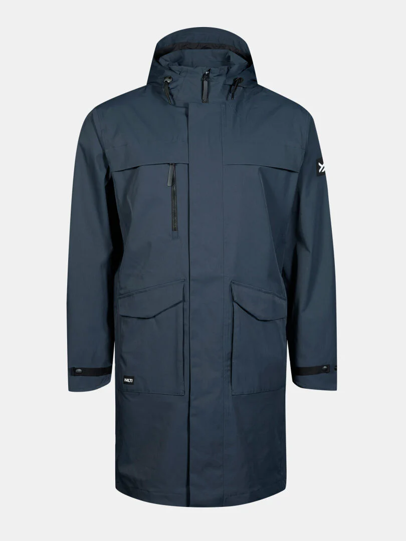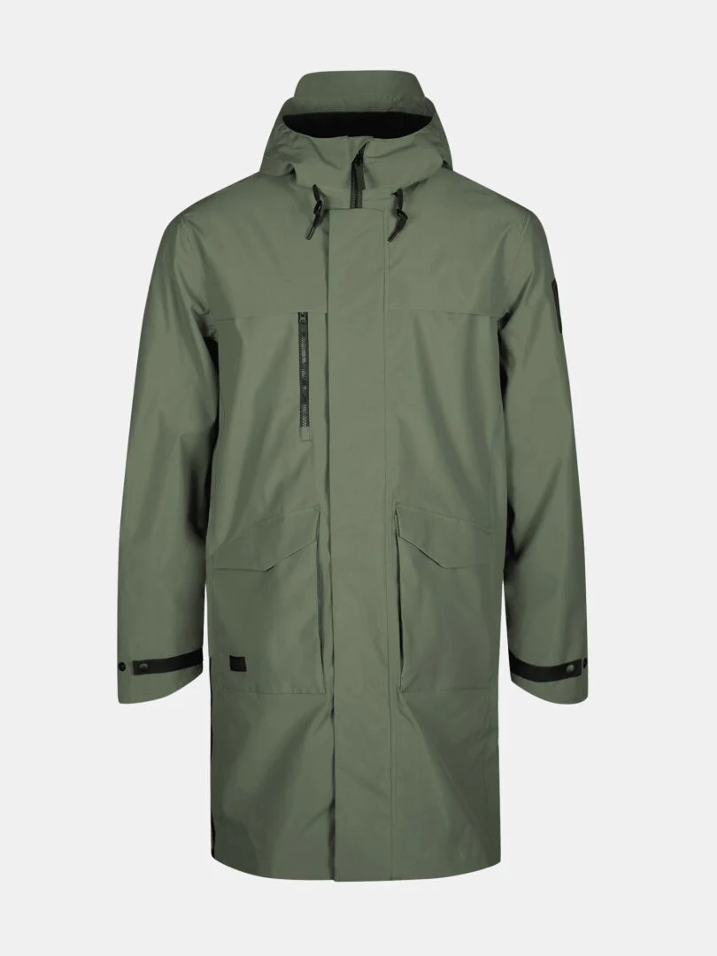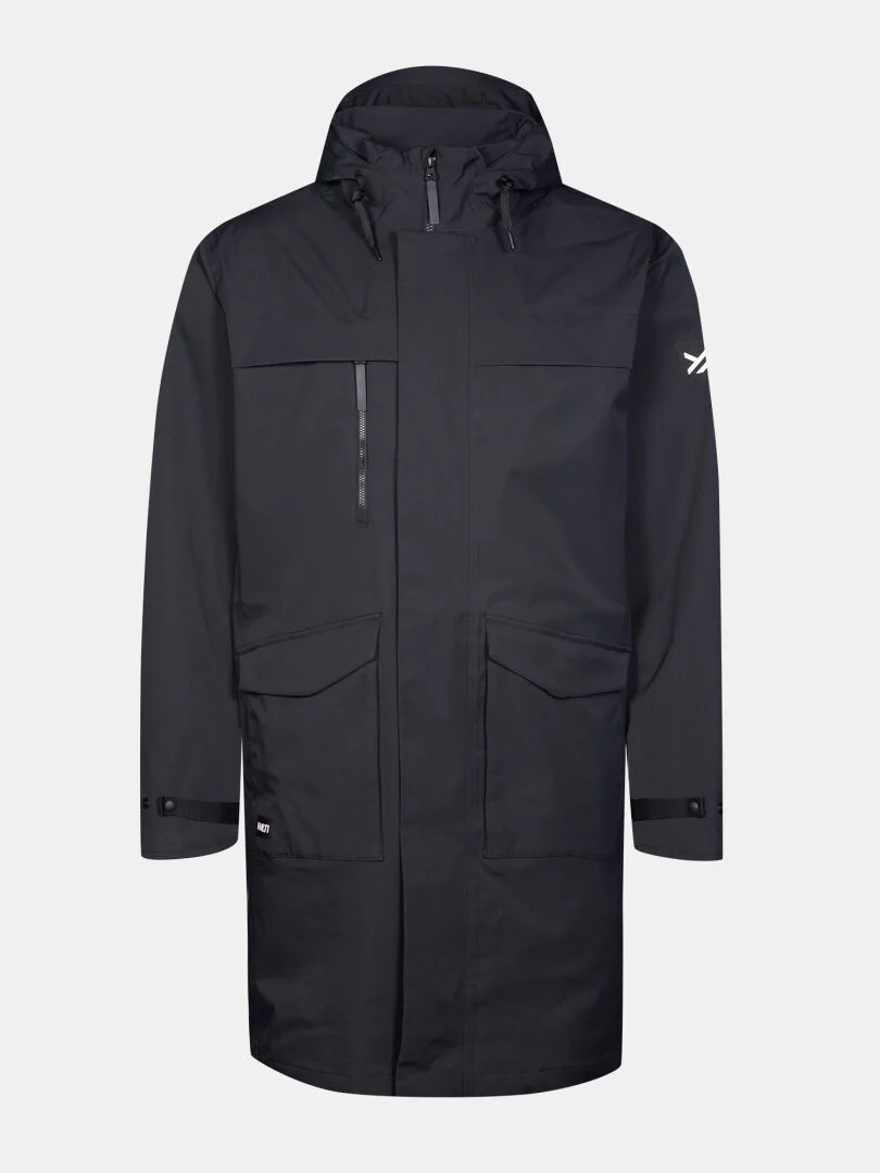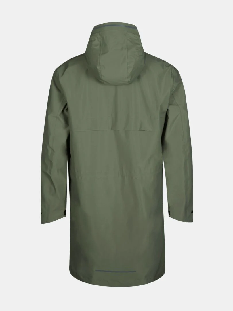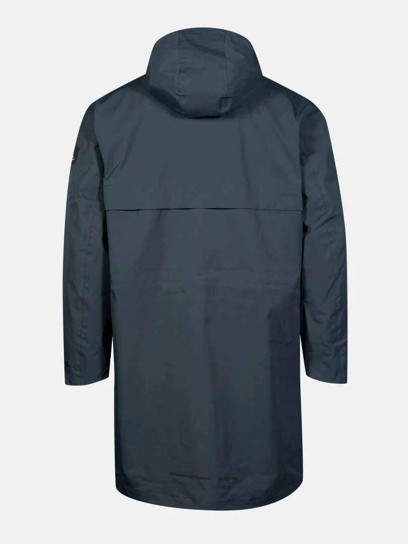 Det vind- och vattentäta DrymaxX®-tyget med tejpade sömmar skyddar effektivt mot väder och vind. Den långa passformen ger bra täckning, medan slitsar med dragkedja vid fållen ökar rörligheten och gör det enkelt att komma åt byxfickor. Mesh-ventilation, smart fickplacering och reflekterande detaljer bidrar till funktionaliteten.