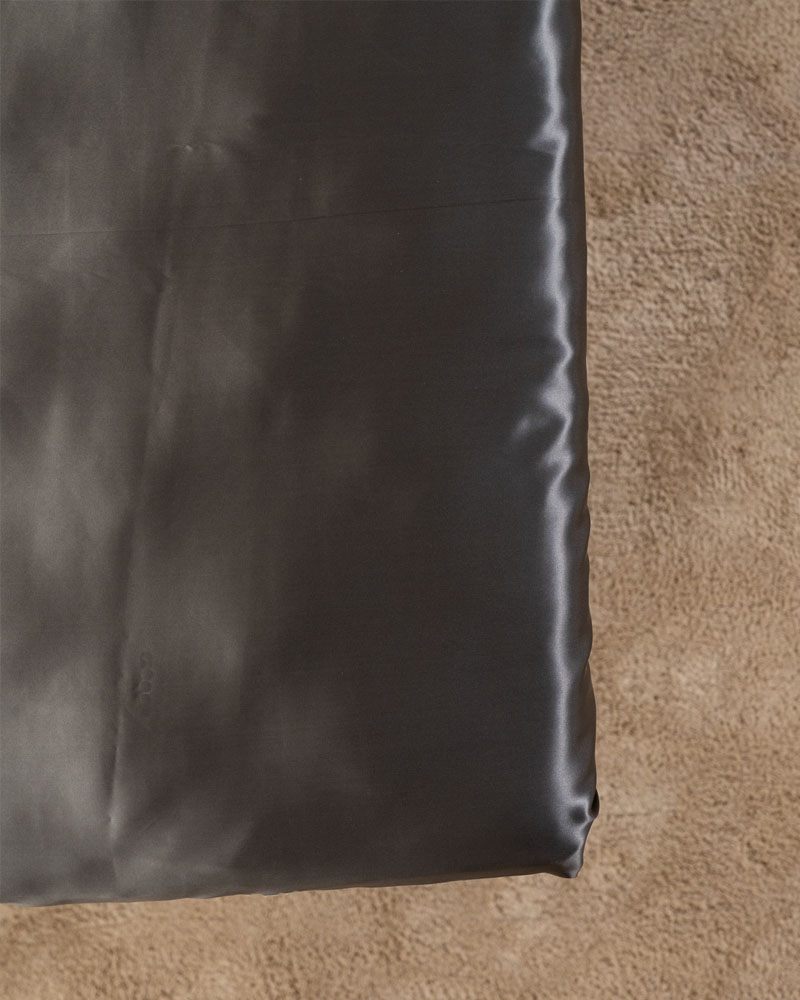 Lyxigt och fint dubbelunderlakan i siden av bästa kvalitet i grå fin färg. Unna dig lyxen att bädda med äkta siden. Att sova i siden är skonsamt mot både hår och hud