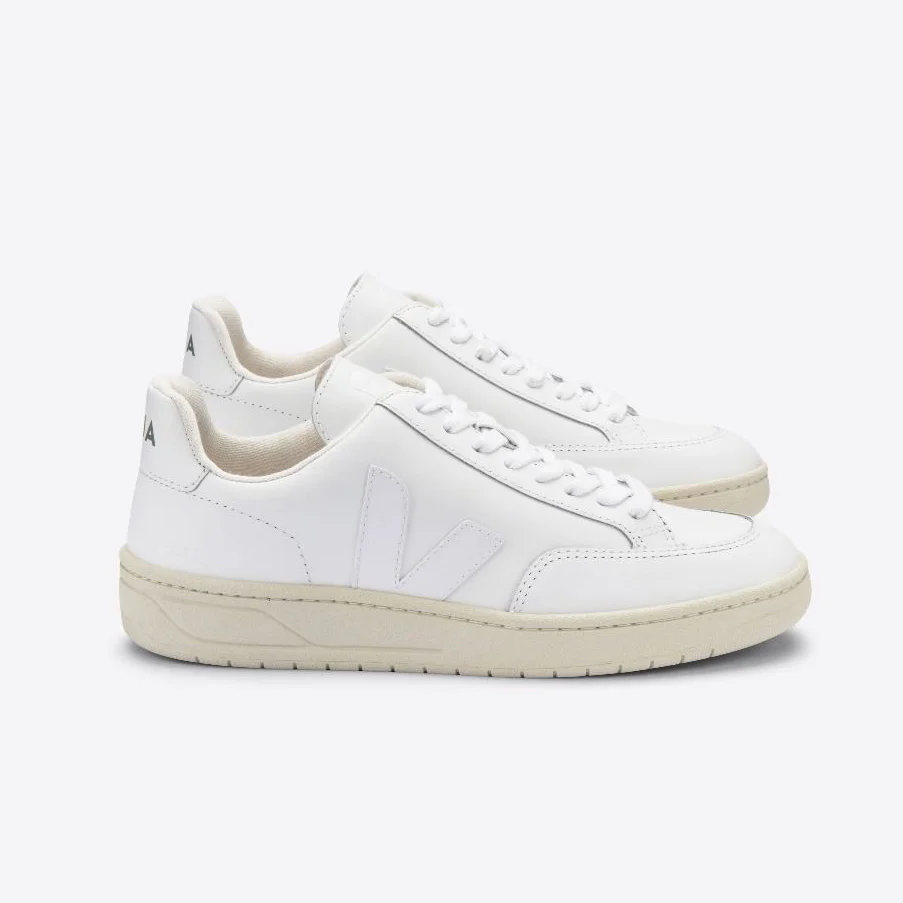 V12 Leather Extra White från VEJA är en vit skinnsneaker med vita detaljer. Veja är rättvist producerade med fokus på hållbara material såsom kromfritt skinn, vildgummi, återvunnen bomull & återvunnen polyester. Veja V-12 påminner en aning om tidiga 90-talets klassiska basketkängor i vitt skinn – fast liksom lite stiligare. Skillnaden är bara att de är betydligt lägre, lite skönare & hur många gånger som helst sjysstare mot människor & miljö.