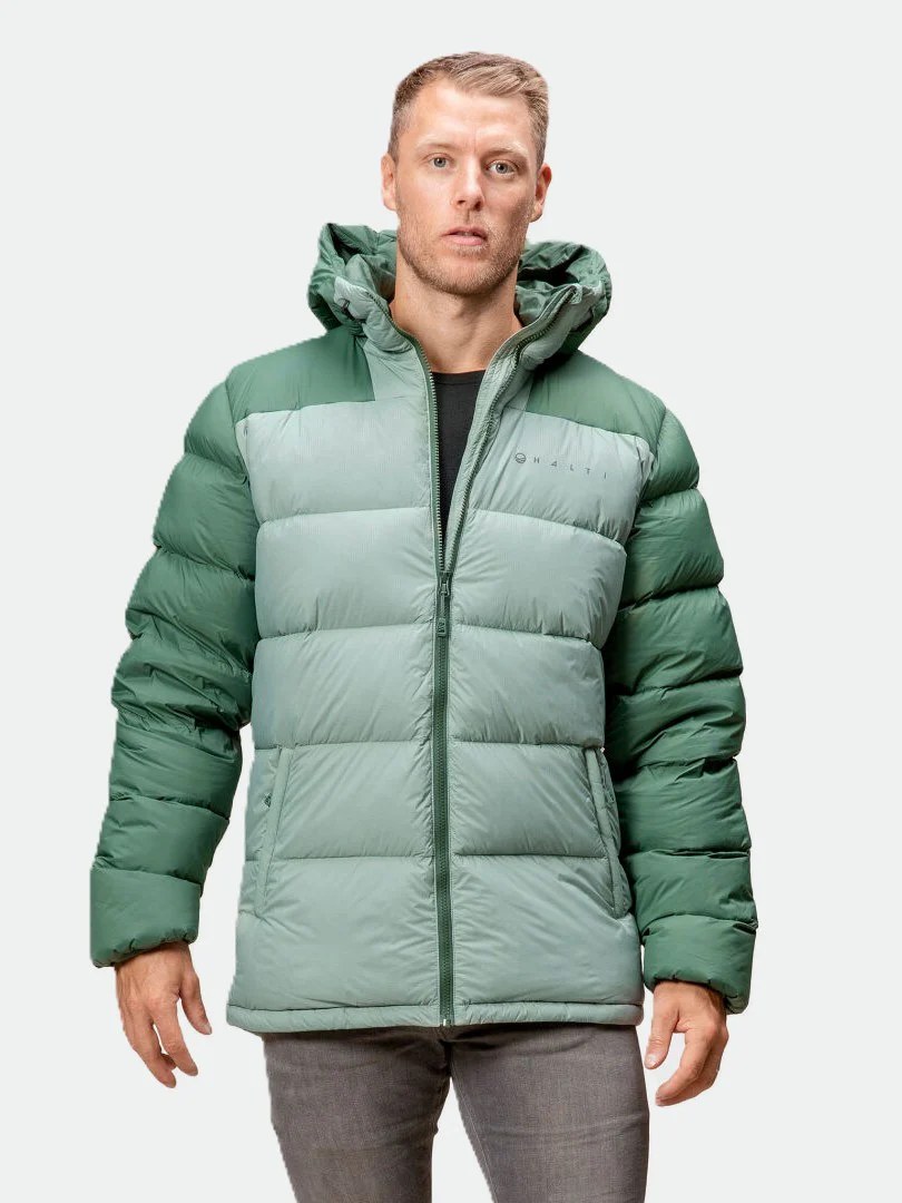 Jackan är tillverkad av vindtätt, vattenavvisande och slittåligt tyg. Denna lätta dunjacka är en del av Haltis Airlite-serie, vars design har sin utgångspunkt i att tillverka en produkt som är så lätt som möjligt och får plats i ett litet utrymme.