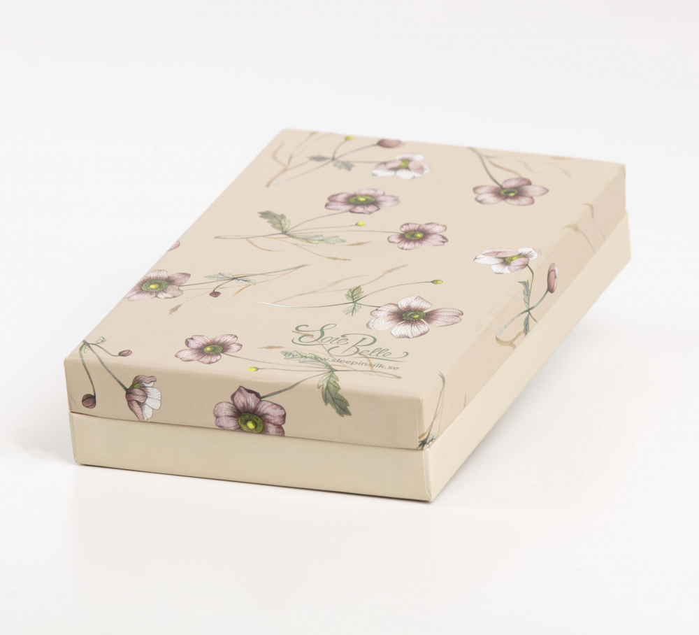 Nattlinet är gjort av 100% silke, Satin. Vikten är 16 Momme, det innebär ett kraftigt tyg med vackert fall.