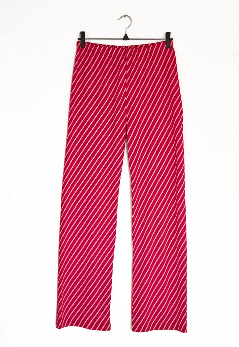 Vid byxa med resår i midjan. Tygkvalitet silkestrikå 63 % viskos och 37 % bomull. Maskintvätt 40 grader.