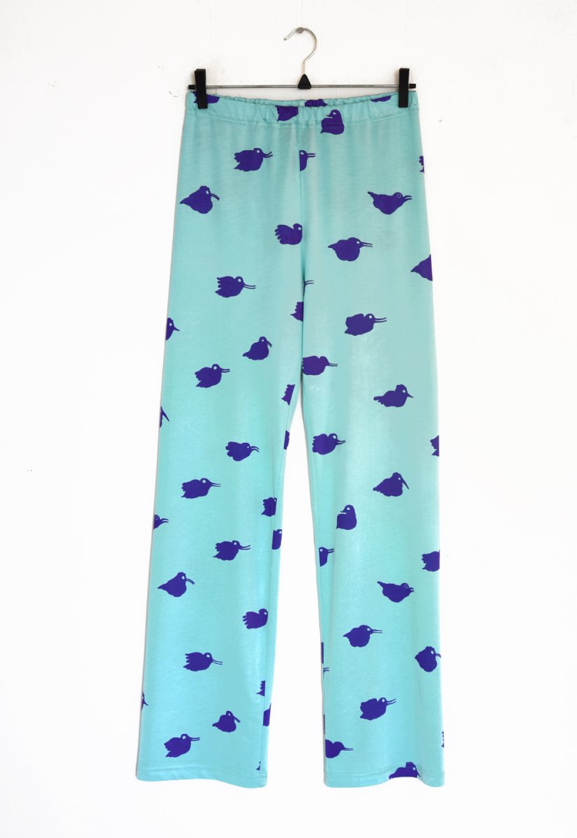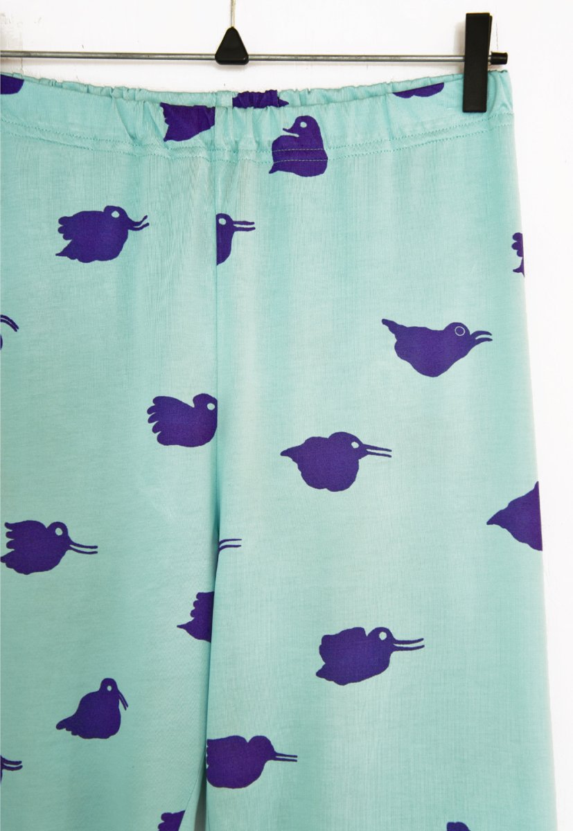 Vid byxa med resår i midjan. Tygkvalitet silkestrikå 63 % viskos och 37 % bomull. Maskintvätt 40 grader.