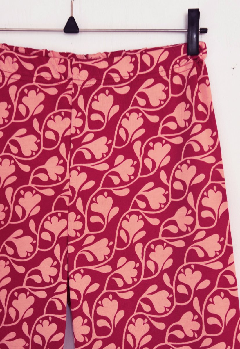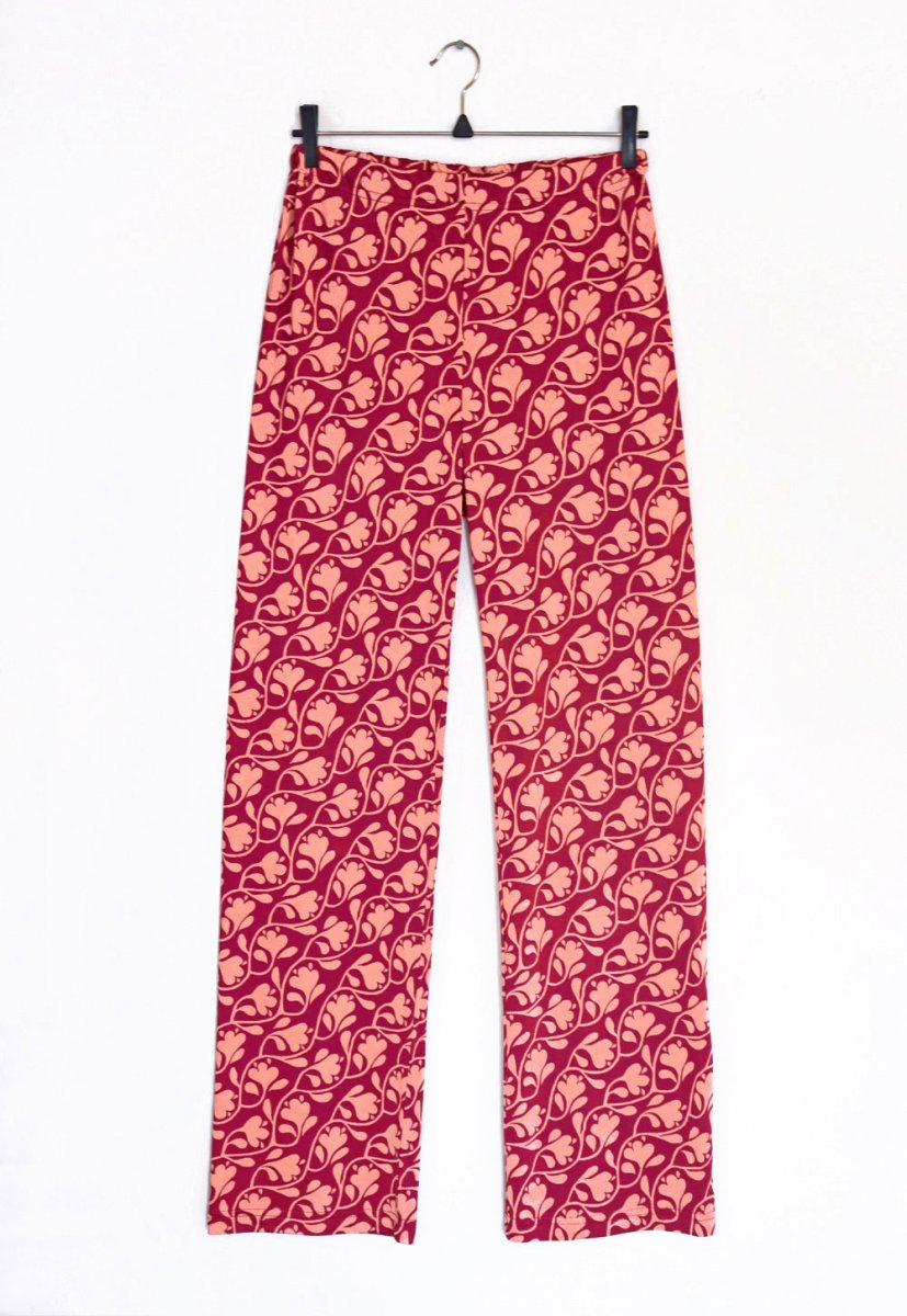 Vid byxa med resår i midjan. Tygkvalitet silkestrikå 63 % viskos och 37 % bomull. Maskintvätt 40 grader.