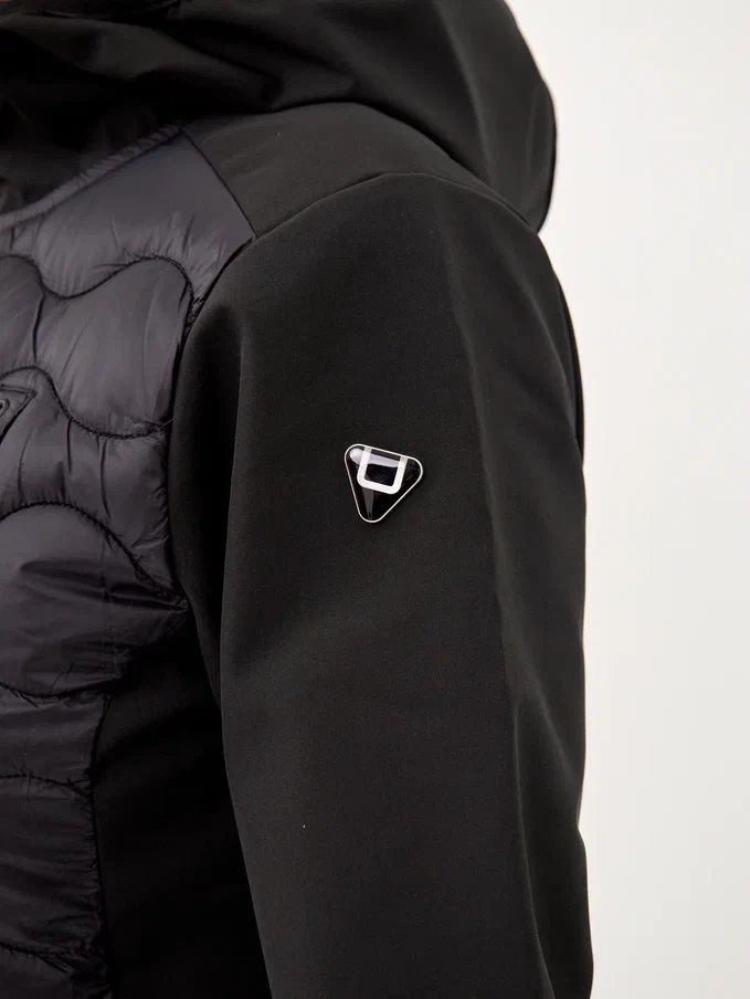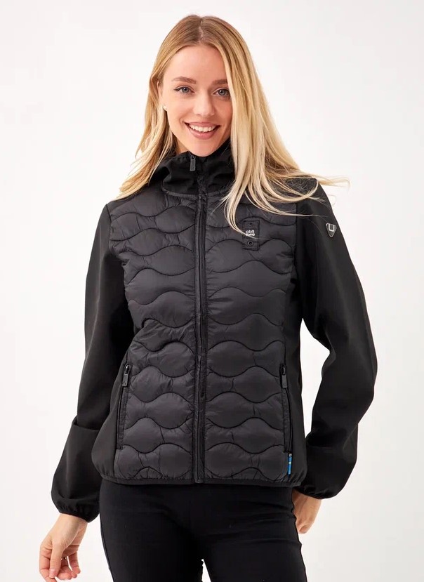 W LIGHTWAVE HYBRID HOOD är en suverän multi funktionell hybrid jacka med ärmar och Rygg i ett smidigt vattenavvisande softshell yttertyg .Framsidan är vadderad och kviltad i ett trendigt vågmönster